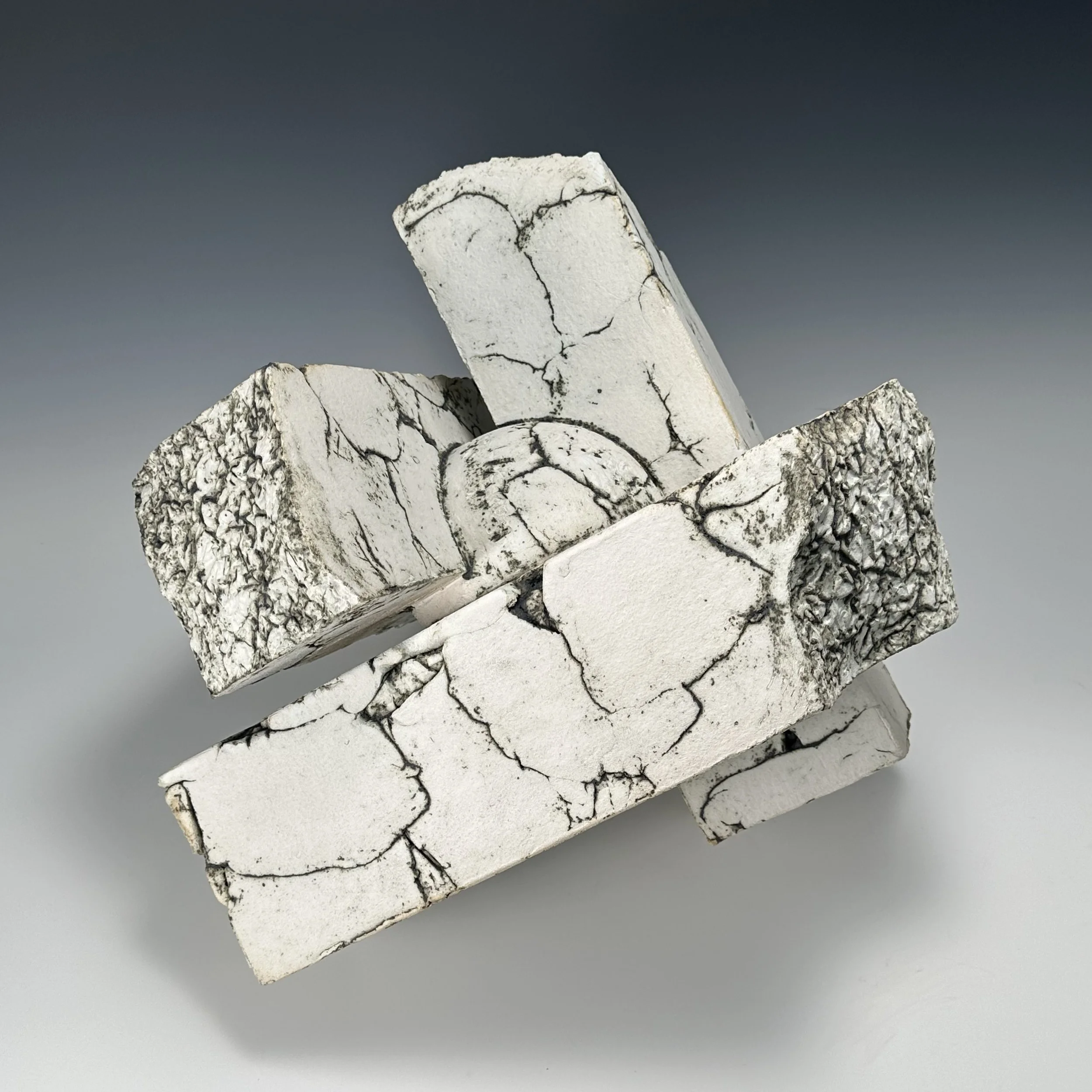 ‘Crosswise’, stoneware, oxide and glaze. 15 x 19 x 19” 2025
